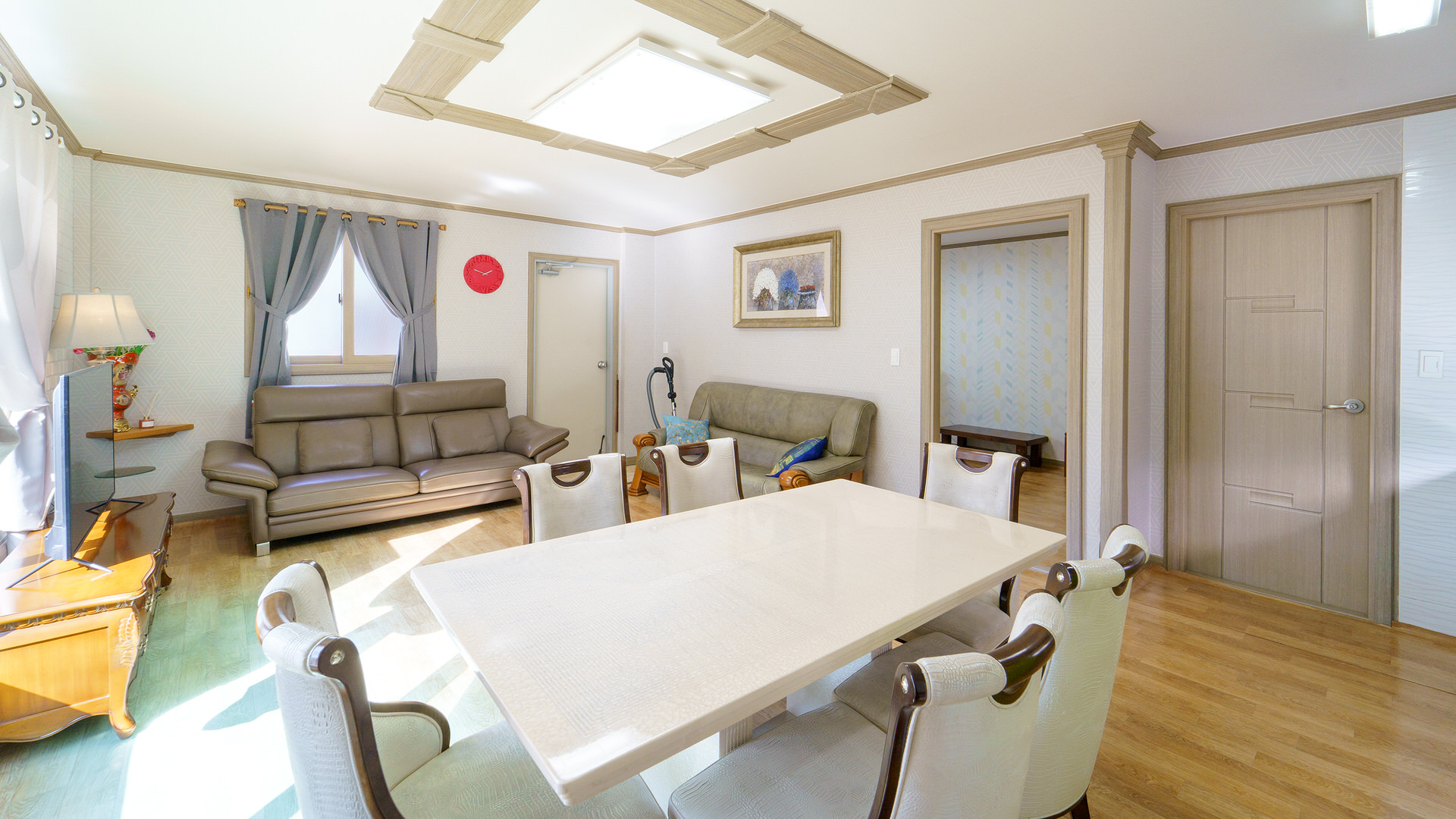 • 집기품목 : TV, 에어컨, 냉장고, 가스레인지, 취사시설/도구, 전기밥솥, 샴푸, 린스, 바디워시, 드라이기, 화장대, 와이파이, 금연, 침대방, VOD, 욕실용품, 남녀공용, 단체